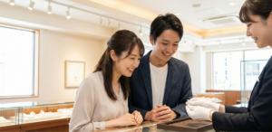 「普通のジュエリーショップと違って、『これを買ってください』という圧が全くありませんでした。担当してくれた方は、まさに『アドバイザー』という感じで、私たちの疑問に一つひとつ丁寧に答えてくれるスタイル。おかげで、本当にリラックスして相談できました。」