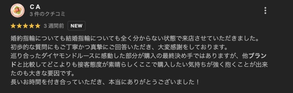 ダイヤモンドシライシ心斎橋本店の口コミからわかる総合評価