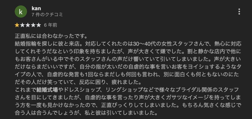 どんなに評価の高いお店でも、一部にはネガティブな声も存在します。 包み隠さず見ていきましょう。