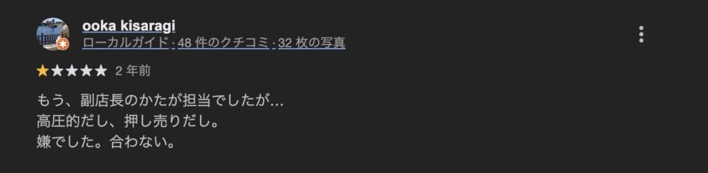どんなに評価の高いお店でも、一部にはネガティブな声も存在します。 包み隠さず見ていきましょう。
