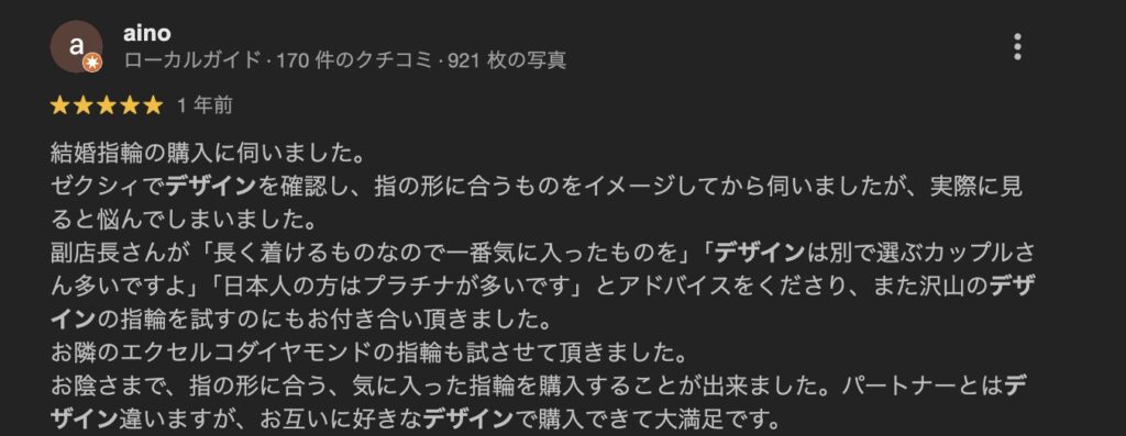 ダイヤモンドシライシ横浜ランドマークプラザ店の口コミからわかる総合評価