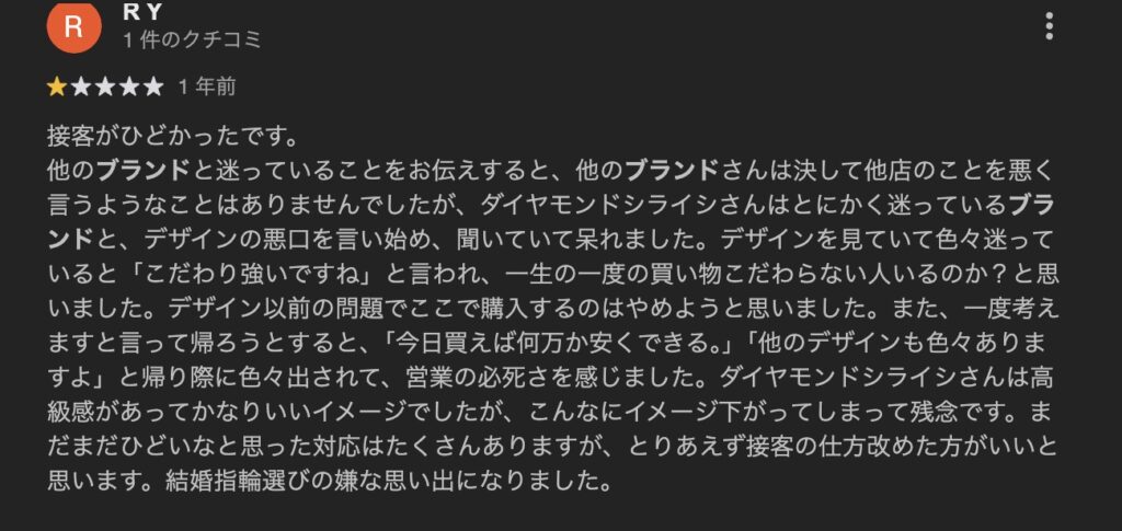 まずは、ダイヤモンドシライシ横浜モアーズ店に実際に訪れた方々の口コミを分析しました。 今回は、ネット上に寄せられた様々な声から、その総合的な評価を見ていきましょう。