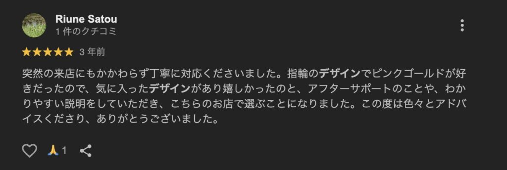 - 良い評判: 豊富なデザイン、親しみやすい接客、全国展開の安心感が高評価。